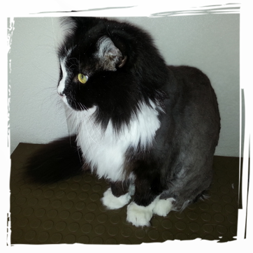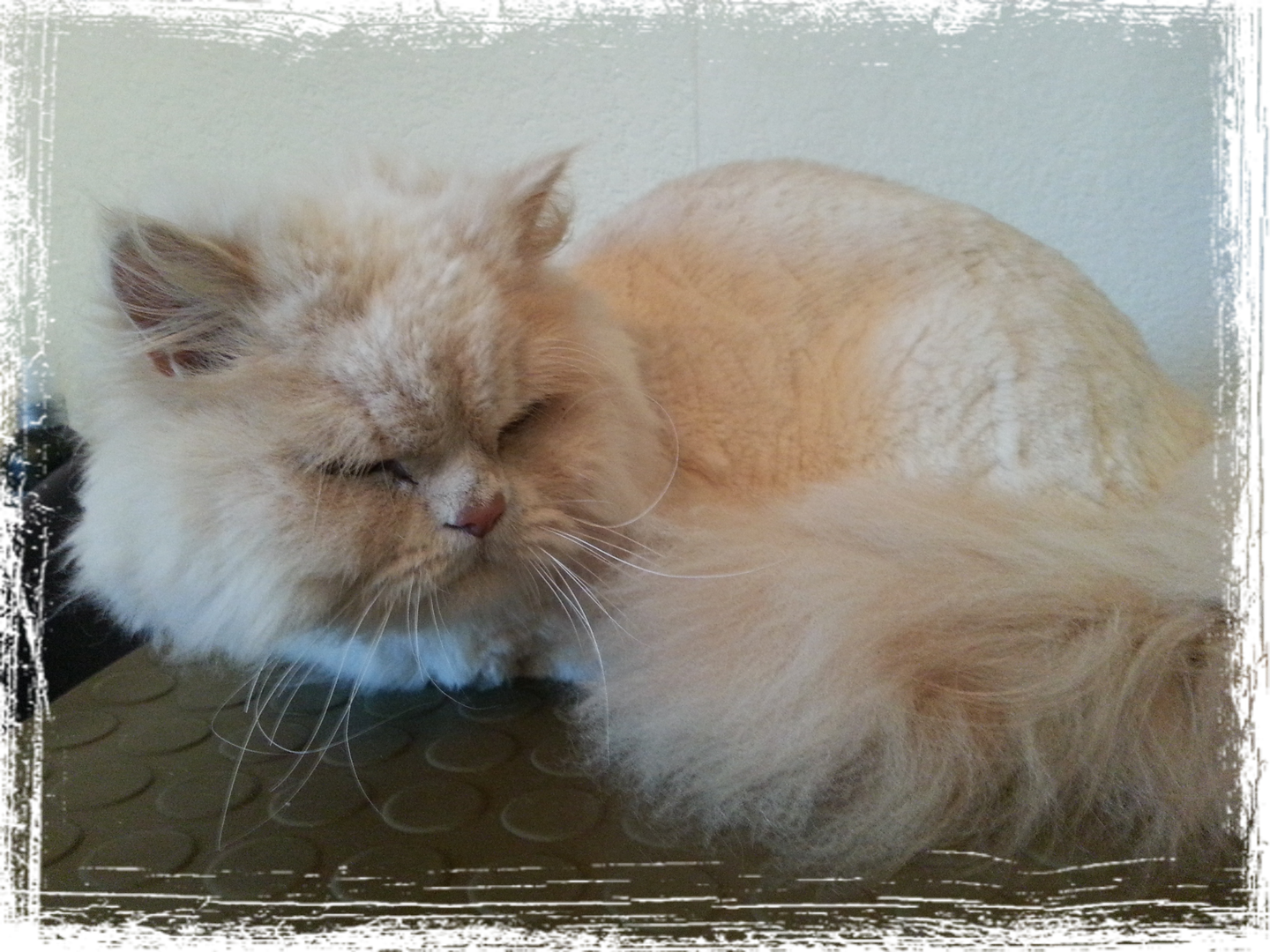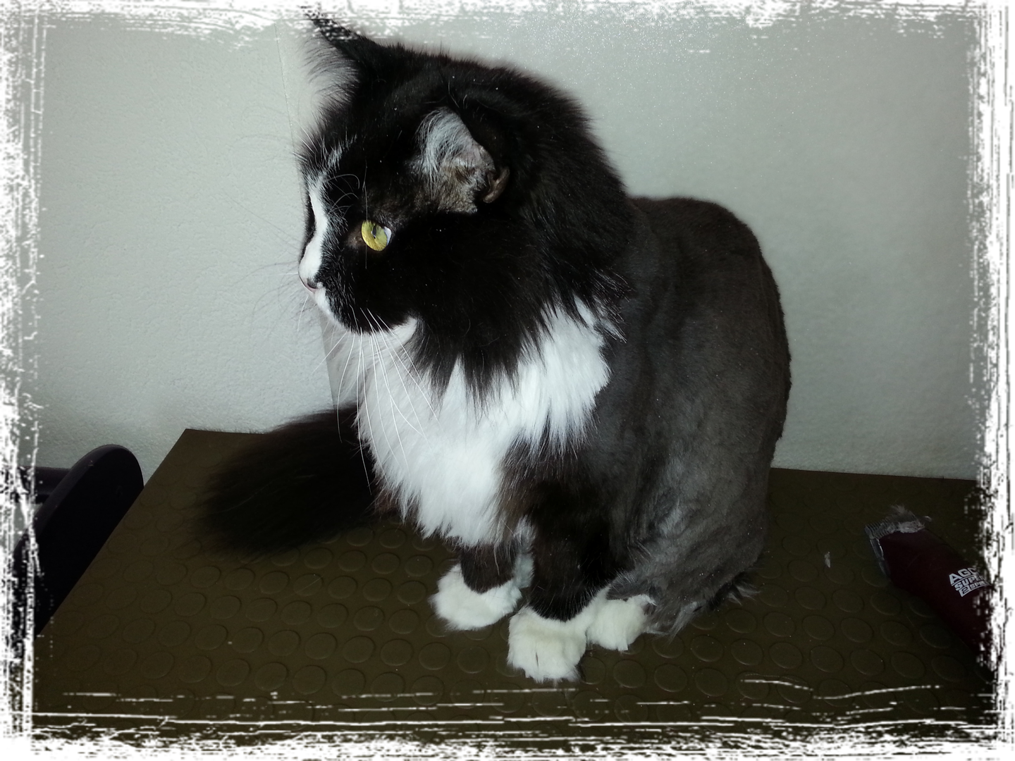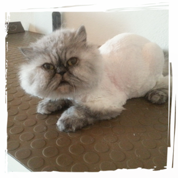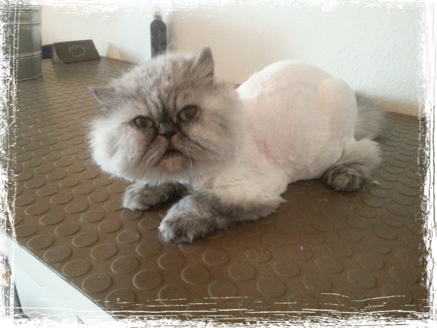 Bitte beachten Sie, dass das Scheren von Katzen ausschliesslich gesundheitlichen und hygienischen Zwecken (verfilztes Fell, Ekzeme, etc.) dient und nicht der Ästhetik. Ein Katzenfell lässt sich aufgrund der elastischen und dünnen Haut der Katze bedauerlicherweise auch nicht ganz gleichmässig scheren.