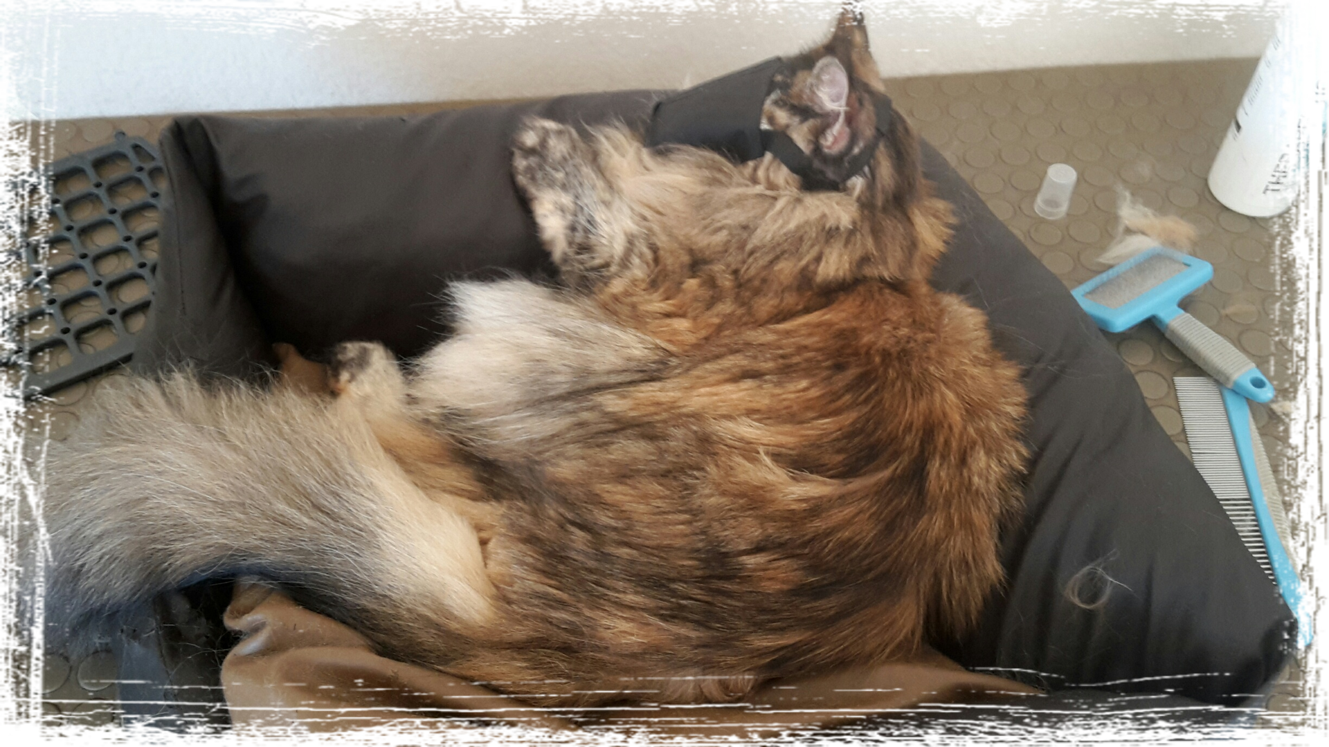 Doch mit ein bisschen Fingerspitzengefühl und vor allem Gelassenheit, erkennen die Stubentiger sehr bald, wie entspannend so eine Pflegebehandlung sein kann.